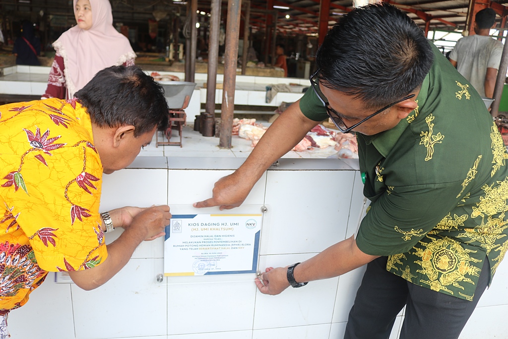 Jamin Keamanan dan Halal, DP4 Blora Pasang Plakat Halal di Kios Pedagang Daging Sapi