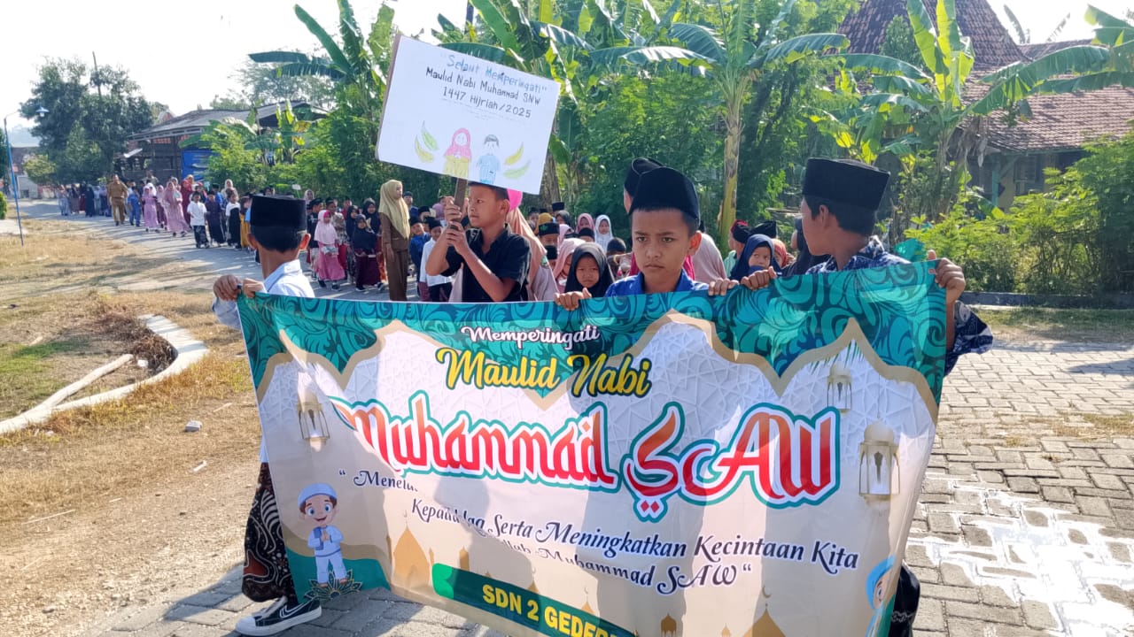 BLORA, (blora-ekspres.com) – Dalam rangka memperingati Maulid Nabi Muhammad SAW, SD Negeri Gedebeg 2, Kecamatan Ngawen, Kabupaten Blora menggelar kegiatan mauludan keliling desa pada Selas (09/09/2025).